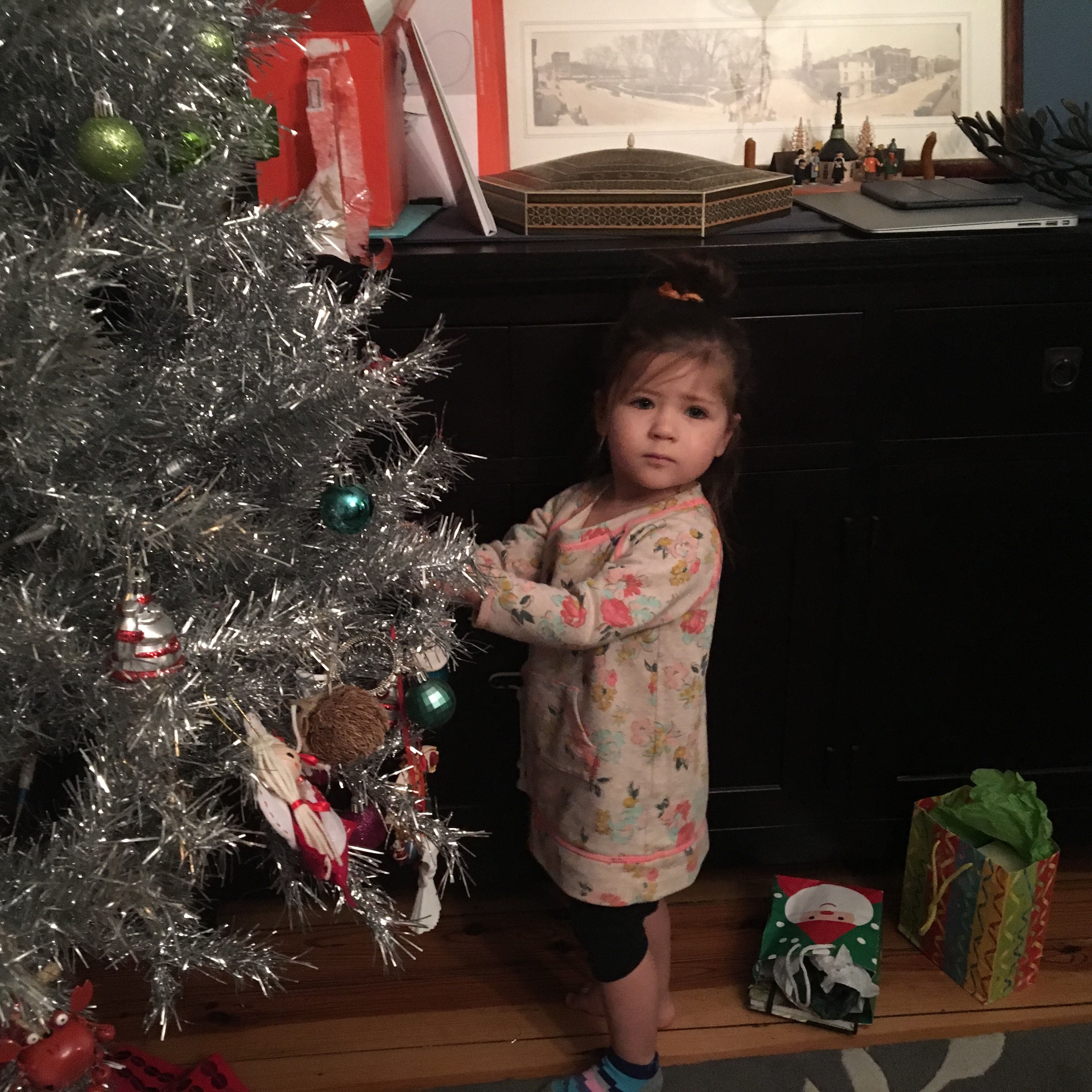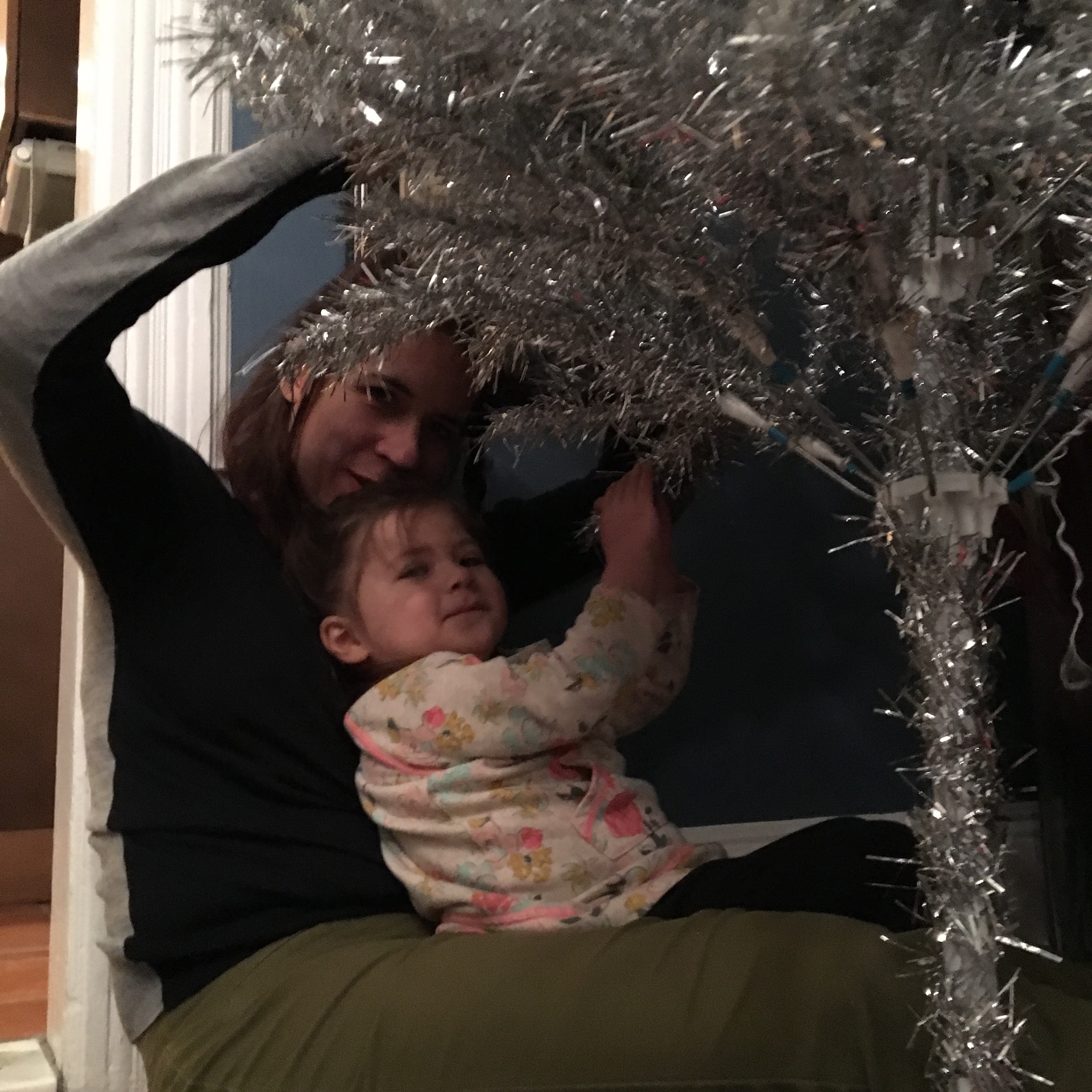Putting up the silver Xmas tree